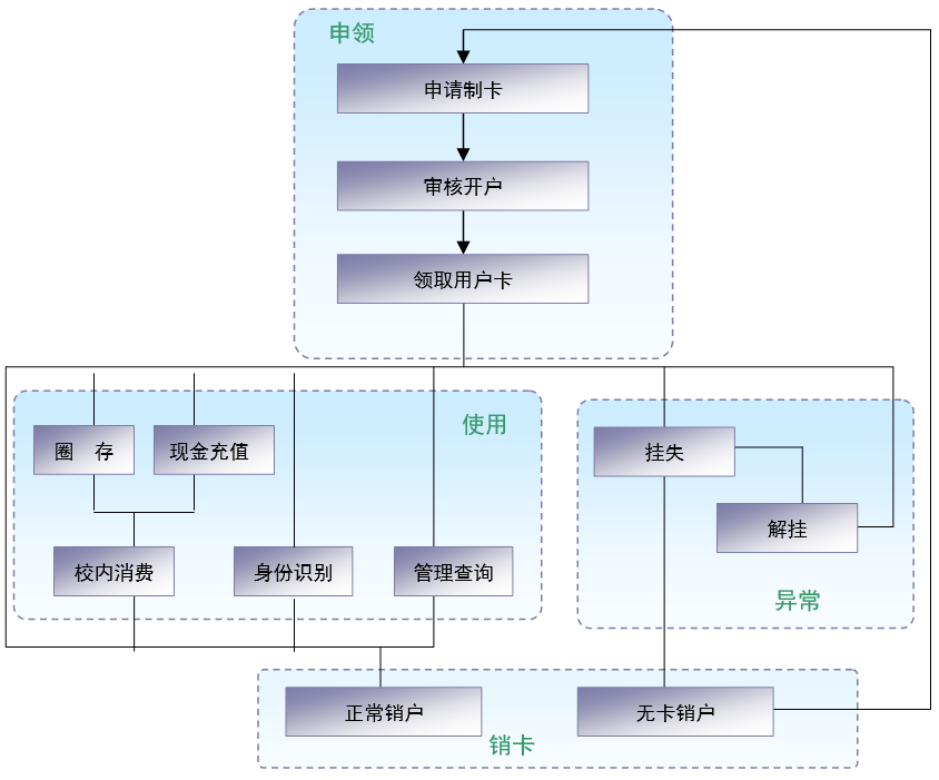 批量退卡:学生毕业时,由所在班级统一将校园卡收齐后交回校园卡管理办公室(银行卡无须交回,可继续使用),办理统一销户手续,并退还卡内剩余资金。